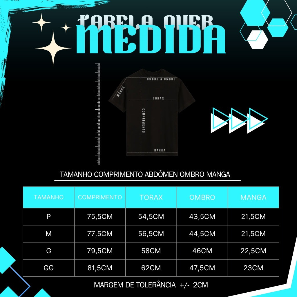 Estampa em tecnologia DTF Premium com cores vivas e nítidas. Alta resistência que evita o desbotamento, mesmo após inúmeras lavagens.